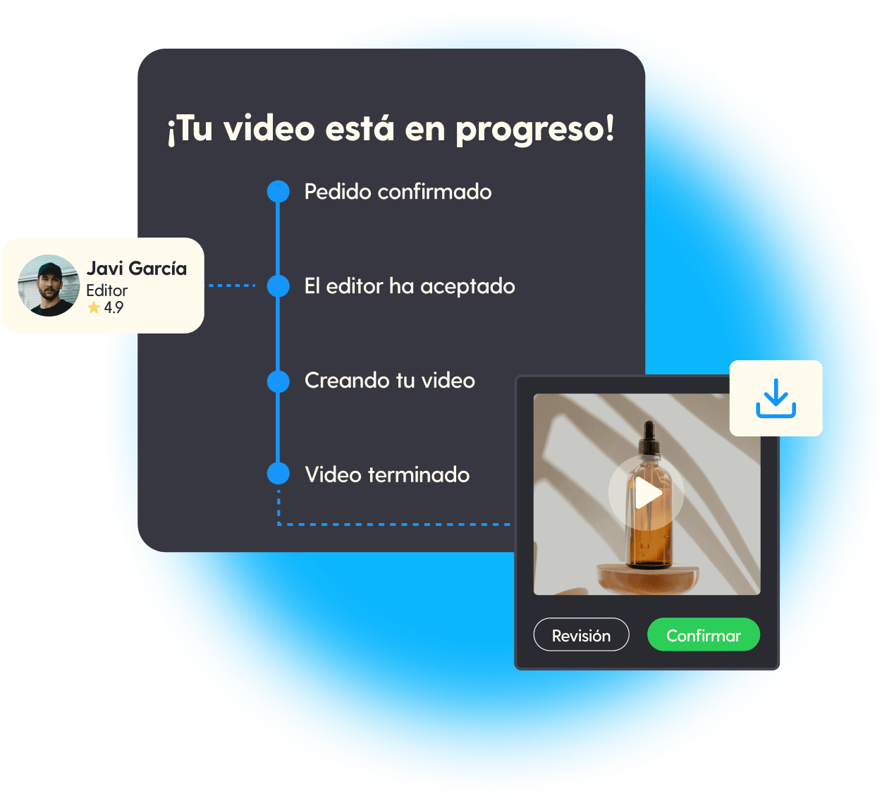 Cuando esté listo, revisa y descarga tu video.