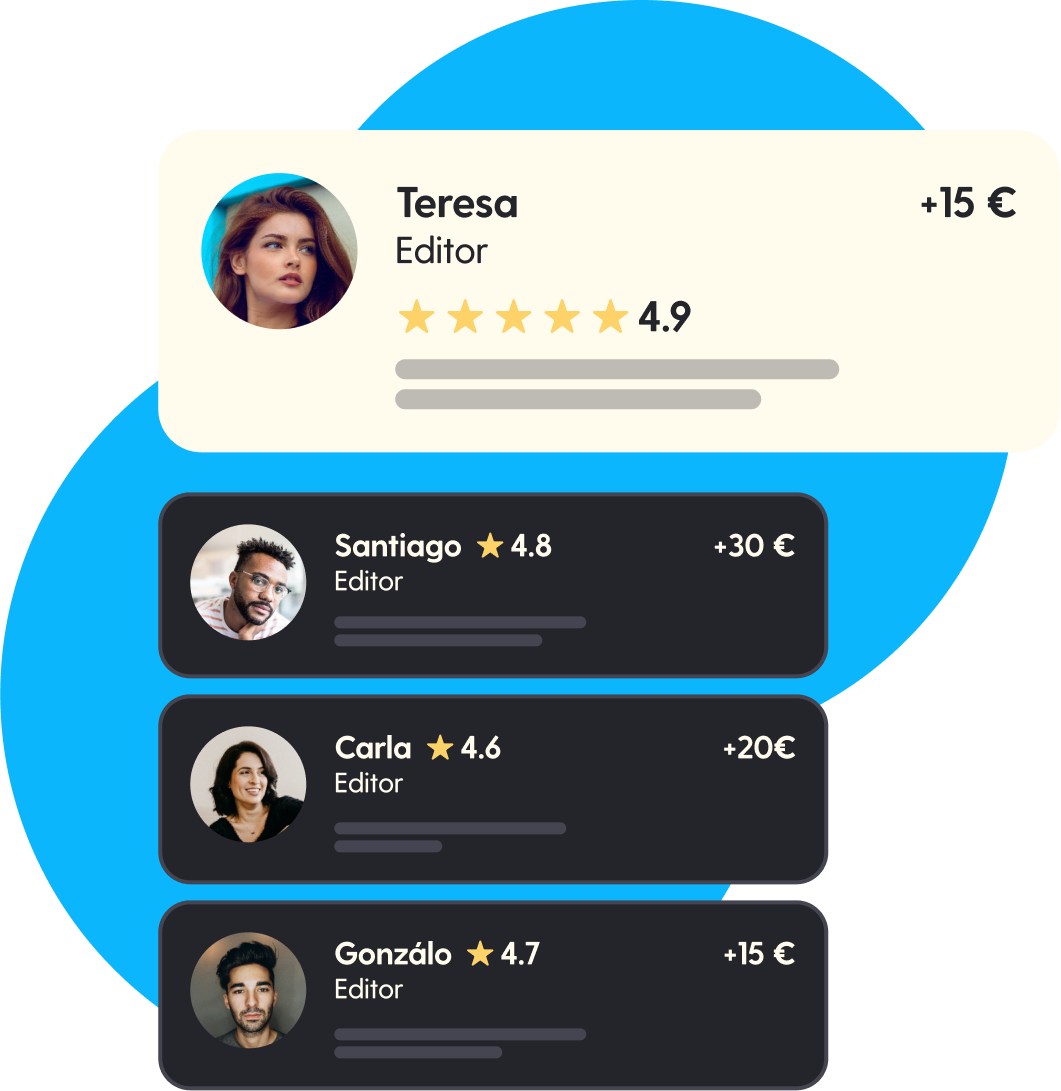 After uploading your content and contracting the service, we connect you with the best video editors according to your choice.