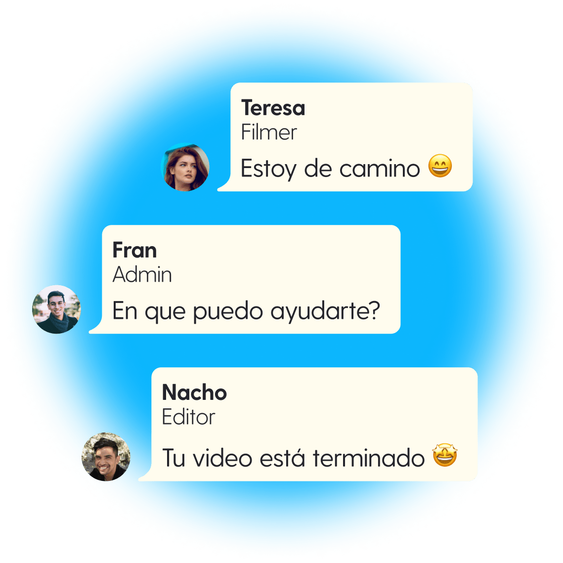 Mantente conectado con tu filmer, editor o nuestro equipo de soporte para resolver cualquier problema. El servicio siempre está respaldado por la Garantía Storimake.