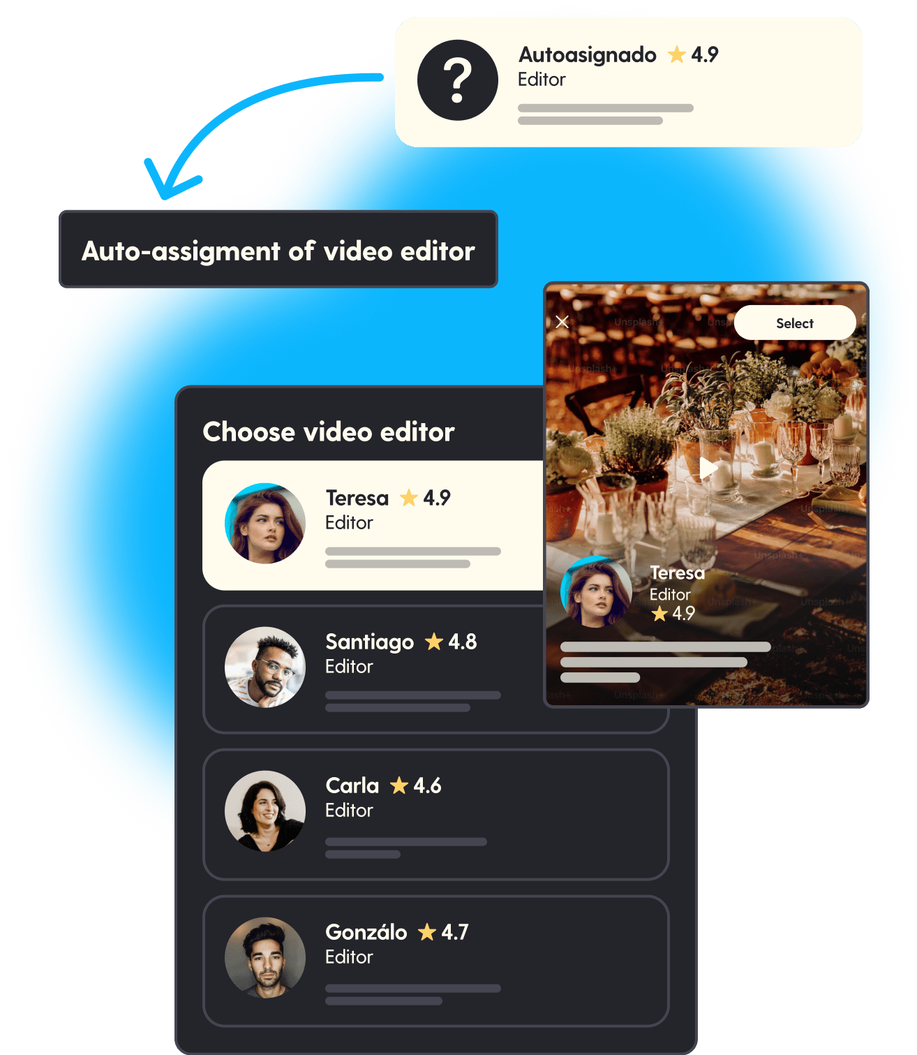 Agiliza tu edición con autoasignación. Publica tu proyecto, nuestro equipo compite. El primer editor que acepta, se encarga. Sin costes adicionales, solo velocidad.